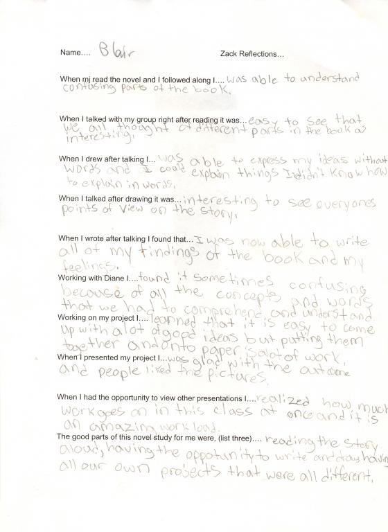 When a study is finished I want to know what the students felt about the process: what they enjoyed, what they learned, what they felt went well, what could have gone better. They completed the following reflections without instruction - the understanding was there waiting to be shared.